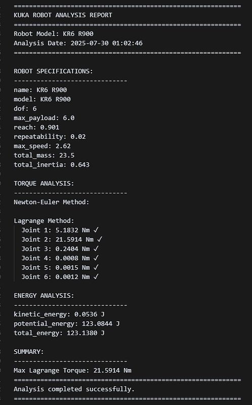 Description: This project focuses on the dynamic modeling of industrial robotic arms. By analyzing the physical properties and motion constraints of KUKA robots, I calculated the necessary forces and torques required for specific trajectory executions. The study bridges theoretical robotics (Lagrangian and Newton-Euler formulations) with practical engineering requirements, providing a foundation for efficient motion control and motor sizing in industrial automation.